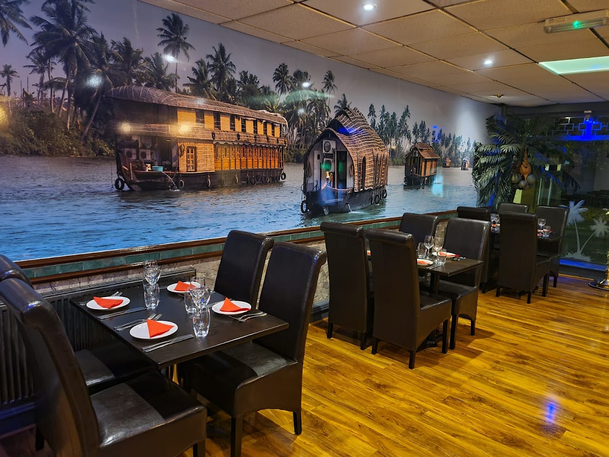 The restaurant boasts a variety of mouth-watering dishes that showcase the flavors of Kerala. For vegetarians, the Paneer Tikka Masala Dosa and Onion Baji are popular choices, bursting with spices and accompanied by tangy chutneys. If you're in the mood for a meatier dish, the Non Veg Thali and Kumrakom Seafood Platter are both hearty and satisfying. For those who enjoy a spicy kick, the Chicken Masala Dosa and Tandoori Chicken will hit the spot. Pair any of these with a refreshing Mango Lassi or a chilled Beer, and you’re set for a delightful meal.